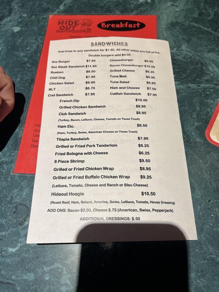 Welcome to The Hide Out, your go-to bar located at 405 W Veterans Memorial Pkwy in Warrenton, MO. Enjoy a relaxed ambiance with a diverse selection of excellent cocktails and craft beers, perfect for solo diners and groups alike. Join us for live concerts, karaoke nights, and engaging sports events while indulging in delicious meals and happy hour specials. Our accessible venue offers a spacious terrace, takeout, and comfortable seating for a memorable experience. With friendly service and convenient parking, The Hide Out is where great food meets vibrant entertainment. Come unwind and explore all we have to offer!